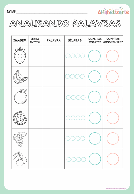 A Tabela Analisando Palavras é um recurso prático e envolvente para trabalhar a consciência fonológica e o sistema de escrita alfabética com crianças em processo de alfabetização.
